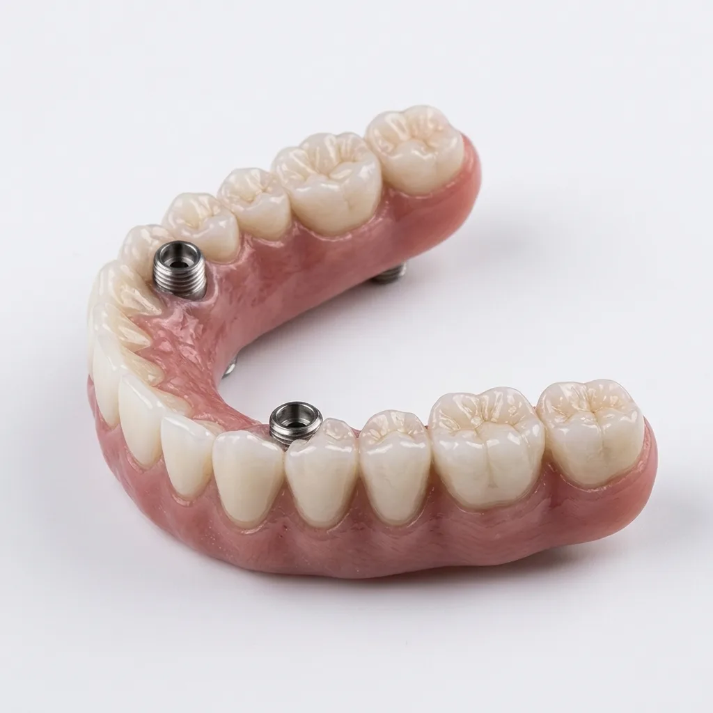 Ela oferece uma alternativa fixa e estética às dentaduras removíveis.